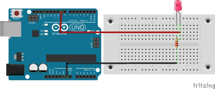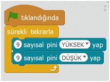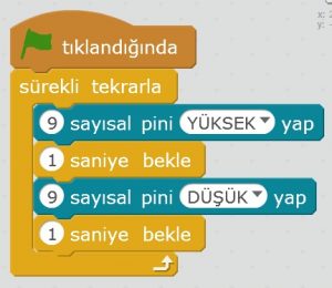 03 – LED YAKIP SÖNDÜRME (led sürekli veya 1 saniye arayla yanıp söner) Gerekli malzemeler:– Led, – 220 ohm direnç (kırmızı, kırmızı renkle başlayan), – kablo