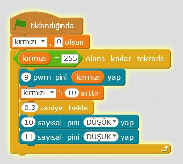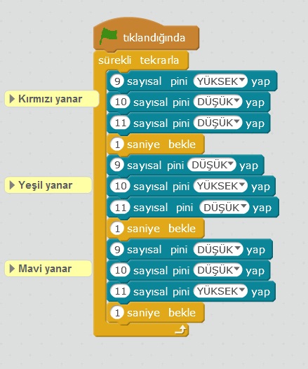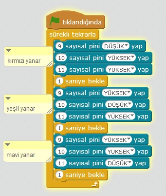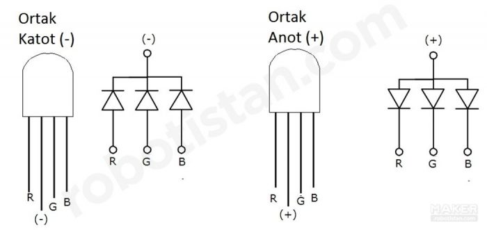 ORTAK ANOT BAĞLANTISI İÇİN KODLAR (ORTAK UÇ 5V YE BAĞLANIR. DİĞER SİNYAL UÇLARI DÜŞÜK SİNYAL İLE TETİKLENİR)