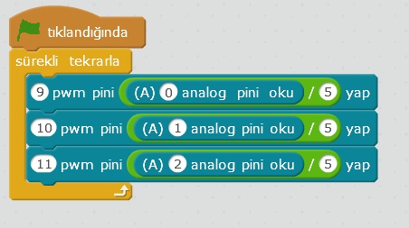 ORTAK KATOT BAĞLANTISI İÇİN KODLAR (ORTAK UÇ GND YE BAĞLANIR. DİĞER SİNYAL UÇLARI YÜKSEK SİNYAL İLE TETİKLENİR))